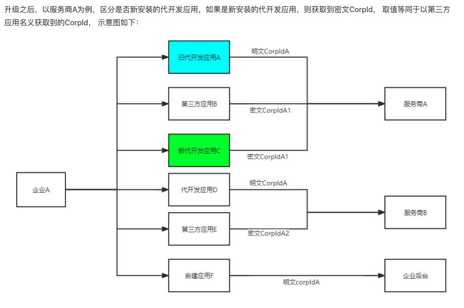 这个调整与去年11月企微账户ID升级的调整几乎一致,只不过上次针对的是第三方应用,而本次针对的是代开发应用。