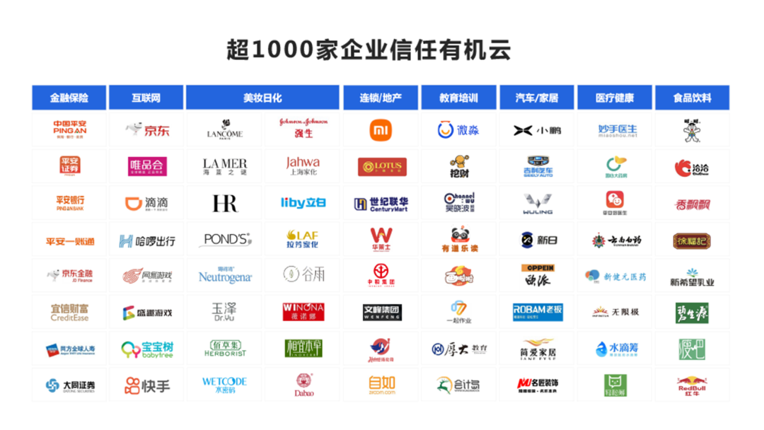 有机云凭借专业的技术、优质的服务成为行业的引领者,截至2022年初,已服务超过3000+企业,其中不乏平安集团、宁波银行、小鹏汽车、京东等大型企业。