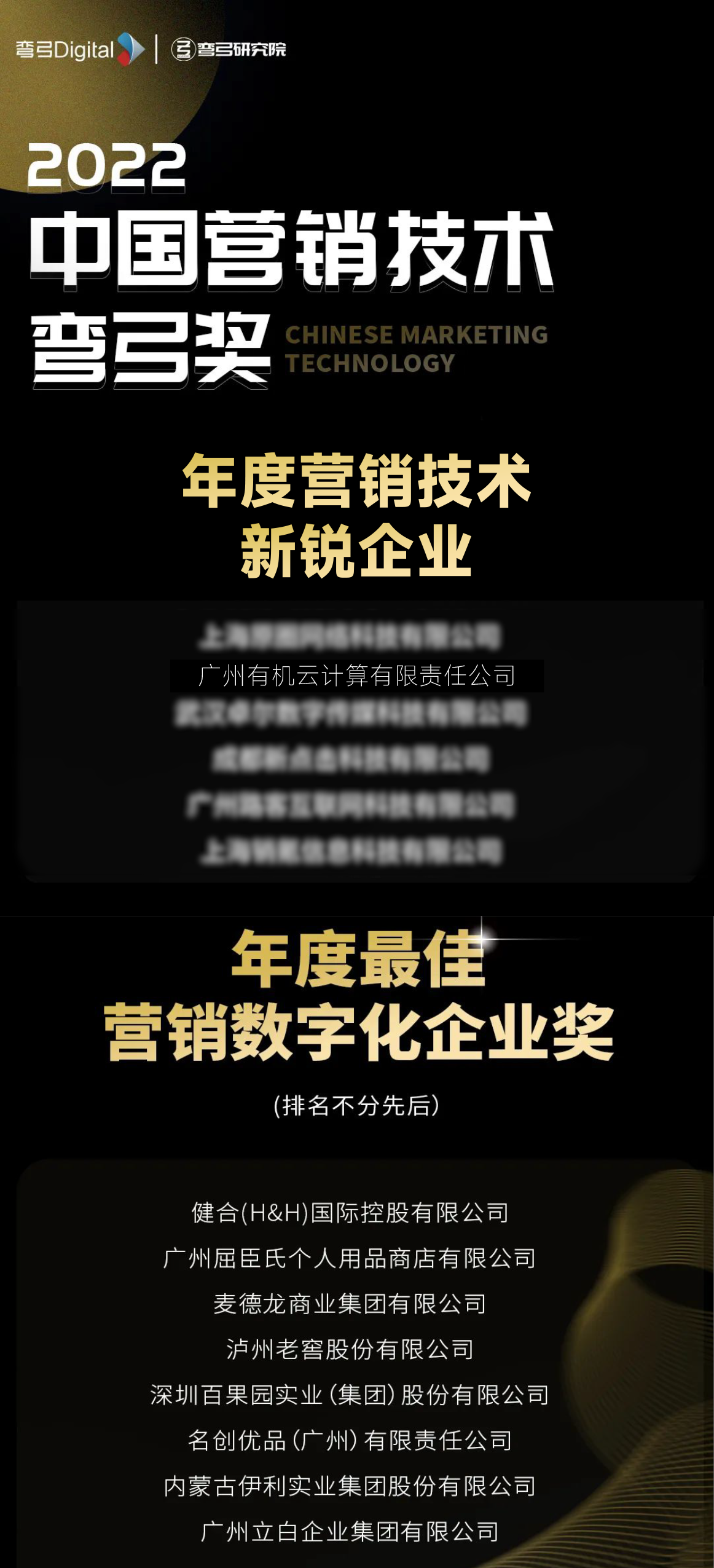 经过主办方深度访谈技术机构、多种渠道收集资料、拜访专家等繁复的筛选、审核环节,有机云获评:2022 中国营销技术弯弓奖——年度营销技术新锐企业!