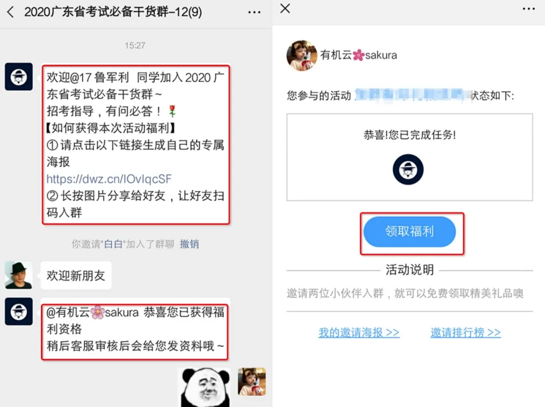 2.活动的玩法是学员用个人专属海报只需要邀请三人进群。